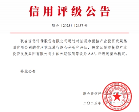 再創(chuàng)佳績!汕尾投控下屬產(chǎn)發(fā)集團(tuán)喜獲“AA+”主體信用評級